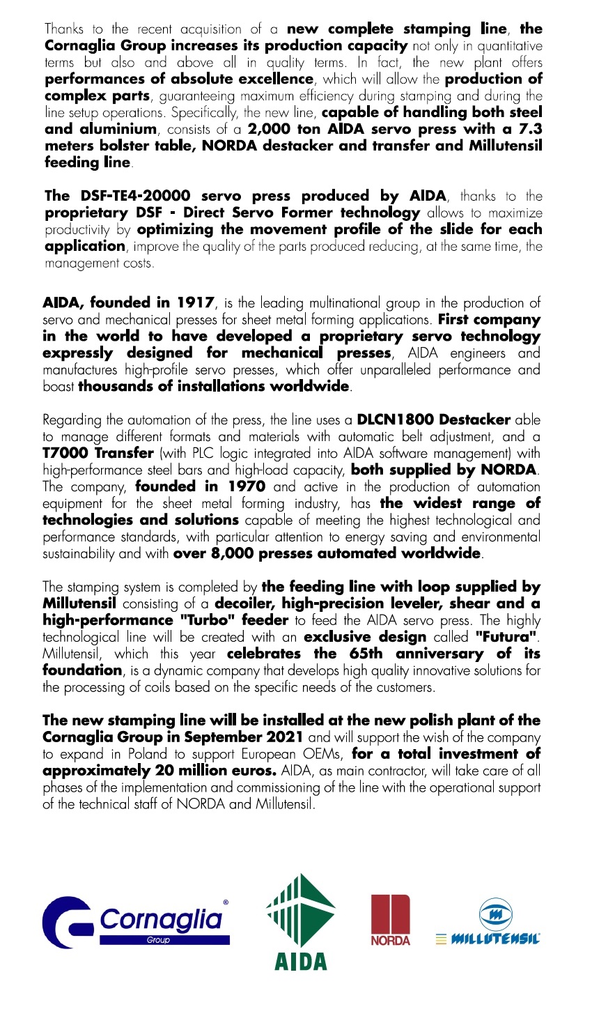 Cornaglia Group increases the production capacity expanding its presence in Poland